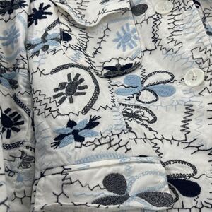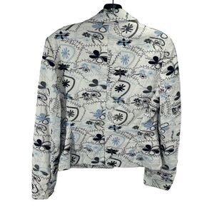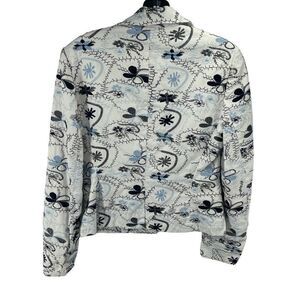 Per Se Women's Floral Cropped Blazer Jacket Fully Lined White Blue Size 4