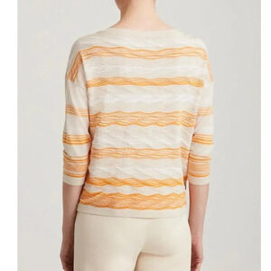 Summer calls for bright color and dynamic texture. This sweater offers both. This standout knit pullover is a masterwork of wavy Ottoman tucks in refreshing neutrals popped with orange.
