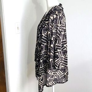 PerSeption Concept Beige & Black Print Waterfall Cardigan, Size XL