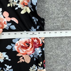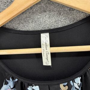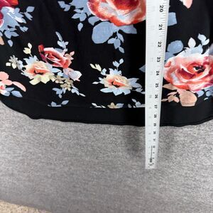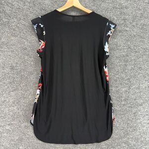 PerSeption Concept Blouse Women L Large Black Floral Short Sleeve Round Neck