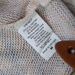 PerSeption Concept long sleeve peach and gray patterned sweater, new without tags on, never worn. Sweater hangs long in the back with keyhole design on back of the neck. Ladies size medium.