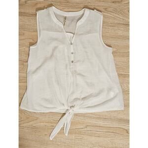 PerSeption Concept Sleeveless Blouse Tie Front White Top Womens Size Small