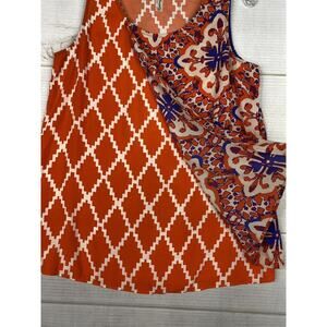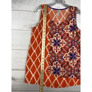 PerSeption Concept Top Womens M Orange Colorful Print Sleeveless Flowy Overlay