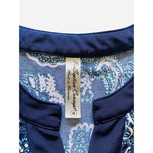 PerSeption Concept Tunic Blue Cream Paisley Print Top V Neck Size Medium