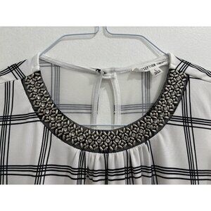 PerSeption Concept Women’s Blouse Top White Black Geometric Beaded Neckline Sz L