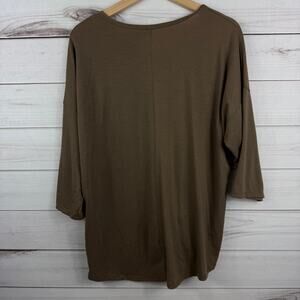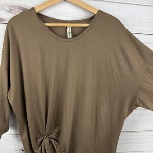 PerSeption Concept Women's Brown Quarter Sleeve Brown Tie Knot Blouse Size L