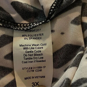 PerSeption Women Top 3X White Abstract Striped Long Sleeve V Neck Stretch P17