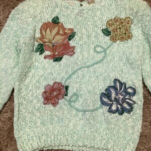 Perbrooke Lane Vintage 90s Mint Grandmacore Floral Sweater Size Large