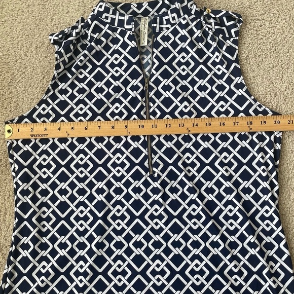 Perception Concepts Sleeveless Half Zipper Front Top. Button Detailed shoulder.