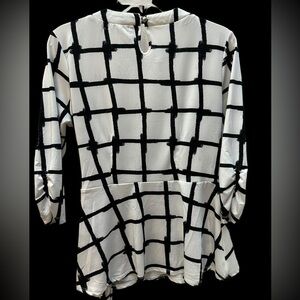 This black and white top with the tie would dress up any outfit Like new condition. Size small