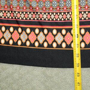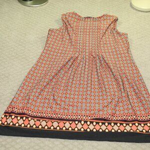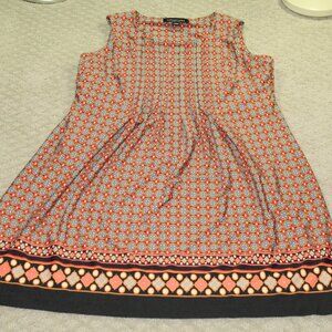 Perceptions - Black Peach Geometric Stretch Pleated Top Sleeveless Dress, L