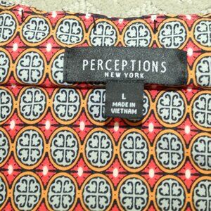 The Perceptions New York Black Peach Geometric Stretch Pleated Top Sleeveless Dress is a stylish and versatile piece suitable for various occasions. Made from a comfortable polyester blend, this knee-length dress features a trendy geometric pattern and colorful accents. The sleeveless design and round neckline add a touch of elegance, while the pullover closure and stretch material ensure a flattering fit. Perfect for parties, casual outings, or even business events, this dress in size L is a must-have for any fashion-forward woman looking to add a pop of color to her wardrobe.