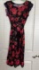 Elegant midi dress with bold red floral design on black. Ideal for versatile styling.