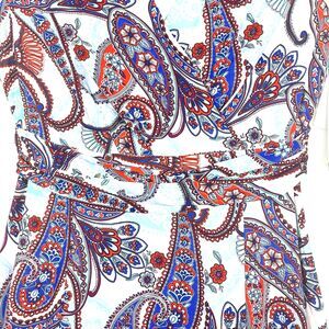 Perceptions Blue Red Paisley Dress Womens SZ LG Fit & Flare V Neck Sleeveless