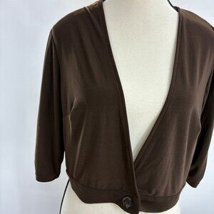 Perceptions Brown Cropped Cardigan Top Women’s Size L 3/4 Sleeve Deep V Button