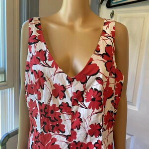 Perceptions Dress White Red Floral Print V Neck Cotton Sleeveless Midi 16P