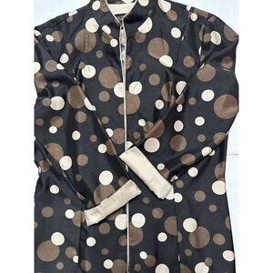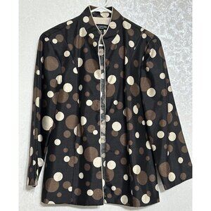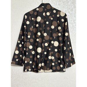 Perceptions Fitted Blazer Brown Cream Open Cardigan Mega Polka Dots Sz 10