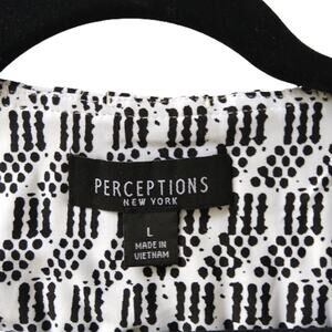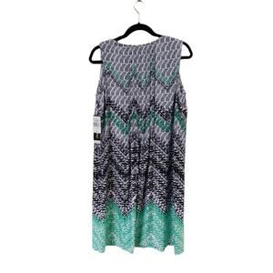 Perceptions New York women's sleeveless pullover shift dress - scoop neck, knee/midi-length, pleated in the center on the front and back; in white, black and mint green print. New with tag; MSRP $60. From smoke-free home.