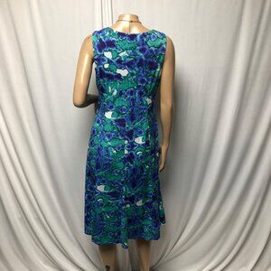 Perceptions New York Dress Womens Sz Medium Blue Green Sleeveless Floral Stretch