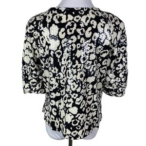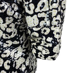 Perceptions New York Women's 12 Black White/Cream Open Glam Jacket. Ruched half sleeves. Material has plastic squares all over for that glam look. Removable shoulder pads. Hook eye closure. Great Condition. No rips, flaws, or stains. Smoke free home.