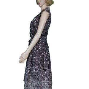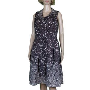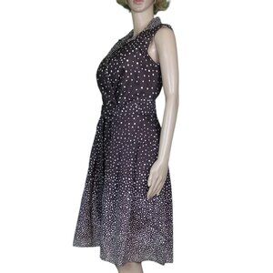 Perceptions New York Mock Wrap Dress Brown White Polka Dot Vneck Women's Size 8