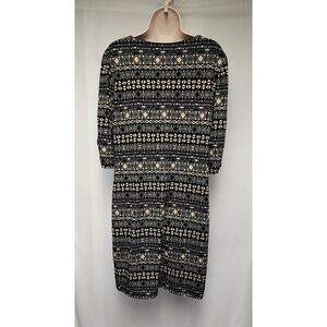 * Perceptions New York black tan dress tucks Tribal pattern 3/4 sleeve Size Large. this dress is in good pre-owned condition. No stains, rips, or any signs of wearing to the fabric. To avoid a high volume of returns please read the measurements below before placing your order. Thank you for your business and happy shopping!