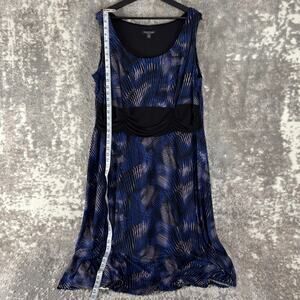 Perceptions Plus Size 22W Abstract Midi Shift Dress Blue Sleeveless Scoop Neck