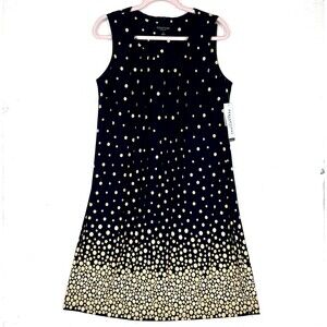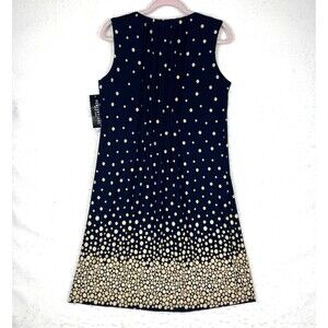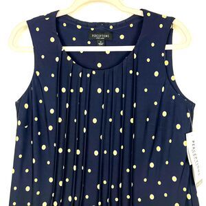 Perceptions Polka Dot A Line Dress Womens SZ M Sleeveless pleated Navy Yellow Casual Elegant