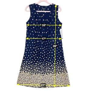 Perceptions Polka Dot A Line Dress Womens SZ M Sleeveless pleated Navy Yellow