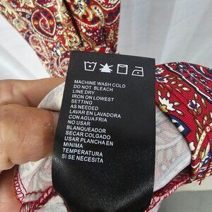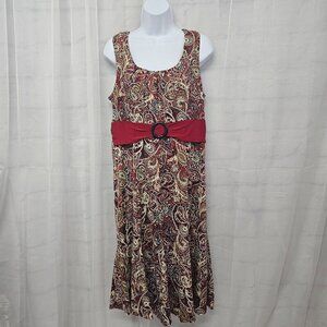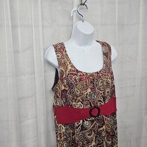 Perceptions Red Tan Paisley Midi Dress Sleeveless Boho L