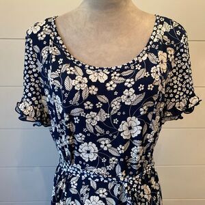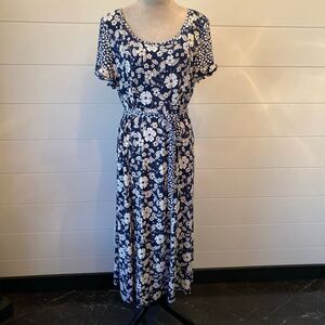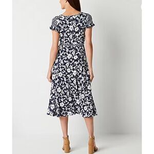 Perceptions Short Sleeve Floral Midi Fit + Flare Dress Size X-Large