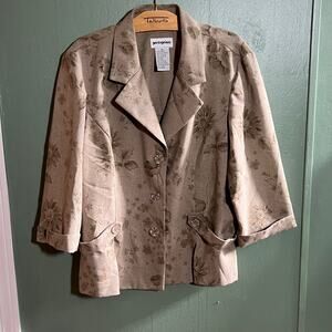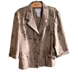 Perceptions Size 15 Taupe Linen Floral Blazer Jacket Professional