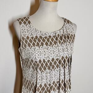 Perceptions Taupe Cream Pleated Sleeveless Stretch Dress Sz S