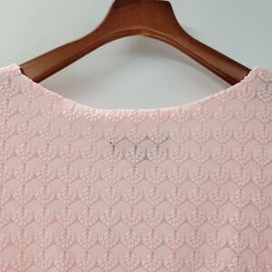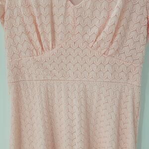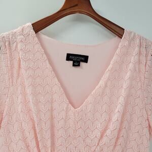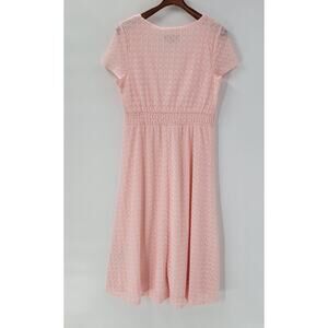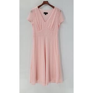 Perceptions Womens Lace Dress L Pink A Line Smocked Waist V Neck Short Sleeves
