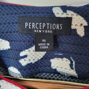 The Perceptions Women's Navy White Floral Cropped Open Front 3/4 Sleeve Bolero in size 18W is a stylish and versatile piece of clothing perfect for various occasions. The cardigan features a round neck, blue floral pattern, and trim accents, making it a great addition to any wardrobe. Made of polyester and spandex, this sweater offers a comfortable and flattering fit for plus-sized women. Whether you're dressing for the office, a casual day out, or a cozy evening, this bolero is sure to add a touch of floral charm to your outfit.