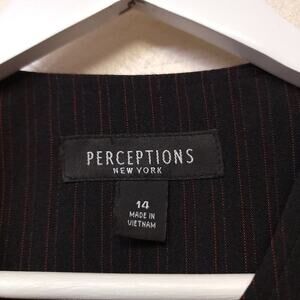 Perceptions Zip Blazer Womens Size 14 Black Red Suit Top Jacket Pin Stripe Suit