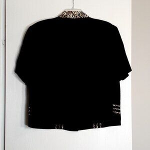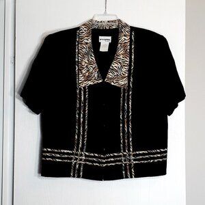 Perceptions by IRENE B Short Sleeve Button Blouse; Black/Animal Print; S…