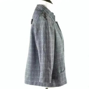 Perceptions petite women’s blazer size 8p black white open front career jacket with pockets 3/4 sleeves