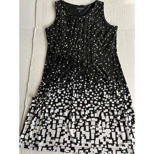 Perceptions size 8P sleeveless pleated pullover dress Pleated on front and back Black with white blocks