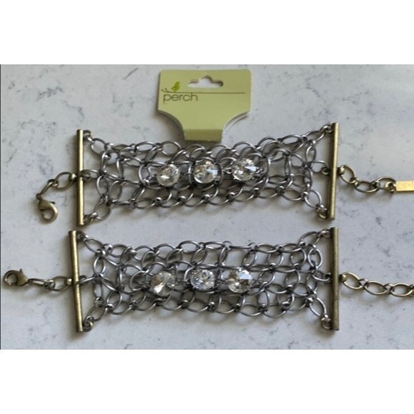 Perch Audrey Chain Link Chunky Bracelet Nickel Brass Tone Rhinestone Metal BoHo