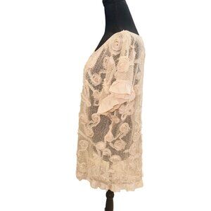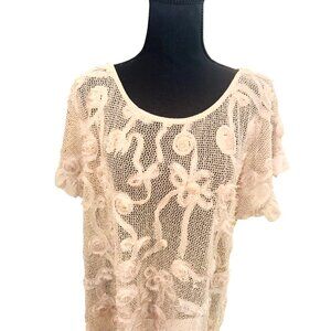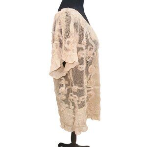 Perch Blu Pepper Beige Lace Mesh Overlay Top 2XL Romantic Cottage Cover Up Sheer