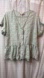Perch By Blu Pepper Baby Doll Striped Ruffled Blouse Size 1XL v-neck short sleeve peplum blouse with a ruffled bottom in hues of green,tan&white.Lightweight cotton/polyester blend