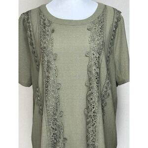 Perch By Blu Pepper Green Floral Embroidered & Lace Blouse Short Sleeve Plus 2XL