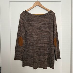 Perch By Blu Pepper Sweater Top Womens 2XL Brown Knit Elbow Patches Pullover