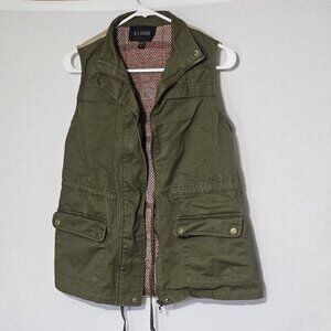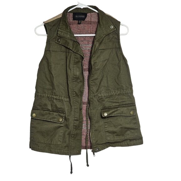 Perch By Blu-Pepper Vest Zipper Womens Aztec Pattern Olive Green Adjustable S
