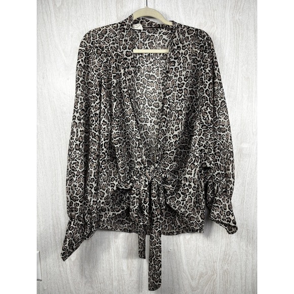 Perch by Blu Pepper Leopard Tie Front Open Cardigan One Size Boho Chic