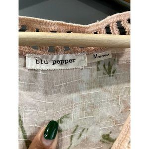 Perch by Blu Pepper Peach Floral Bell Sleeve V-neck Floral tunic Size M