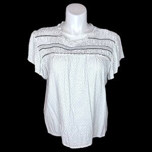 Perch by Blu Pepper Top 3XL White Smocked Flutter Sleeve Blouse Boho Textured