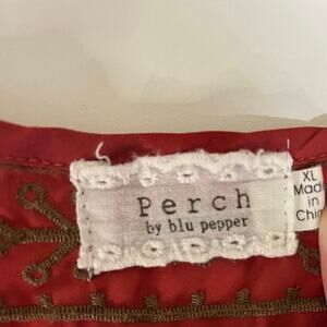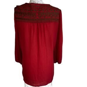 Perch rust colored long sleeve blouse with embroidery, womens size XL