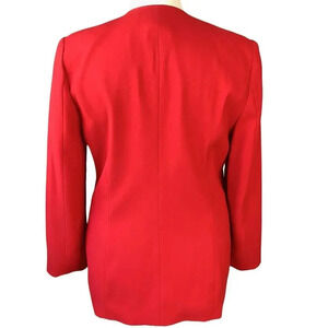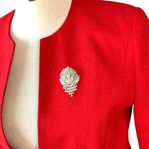 Perche Couture Vintage Fitted Collarless Suit Blazer Jacket Brooch Size 12 Red